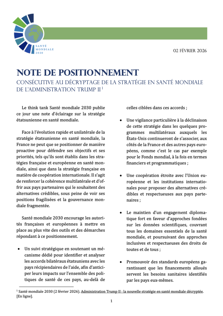 25 – Note de positionnement consécutive au décryptage de la stratégie en santé mondiale de l’administration Trump II (Février 2026)